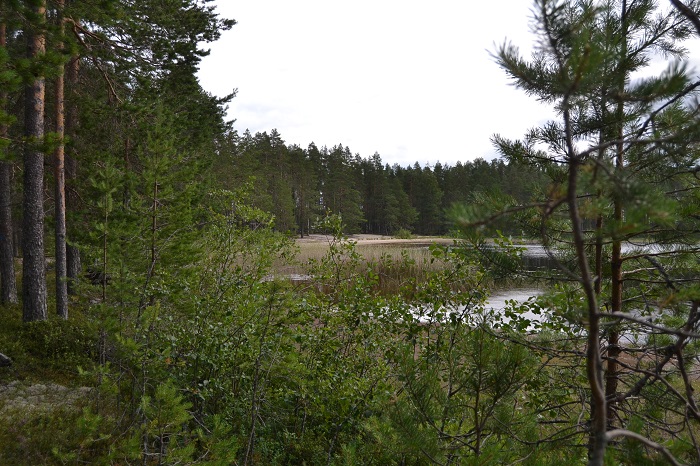 “Mennään jo”, Vappu tuumii. Suomunkierto kiertää erämaisen ja hiekkarantaisen Suomunjärven. Kuljimme reitillä lyhyitä pätkiä pitkospuita pitkin. Meitä ei tullut vastaan koko vaellusretken aikana yhtäkään toista retkeilijää paria retkeilyseuruetta lukuunottamatta, jotka kulkivat meitä vastaan aivan viimeisillä kilometreillä paluumatkalla. Saimme kulkea useita tunteja täydessä luonnonrauhassa.