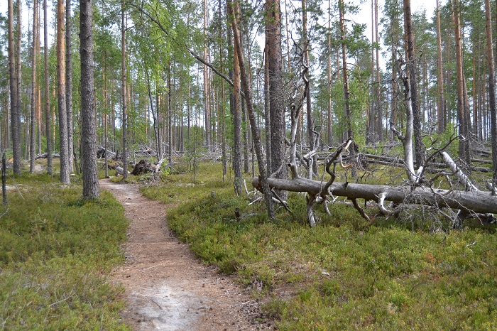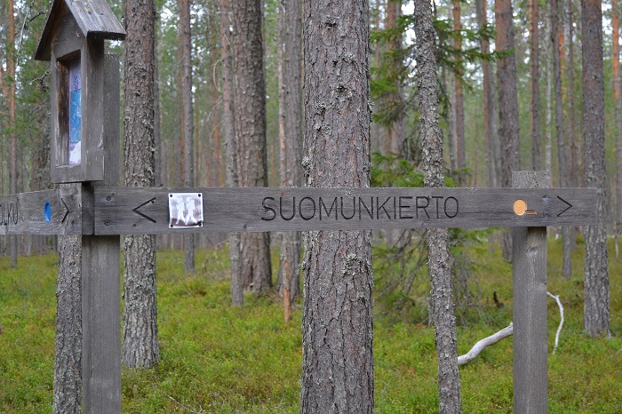 Jatkoimme Suomunjärven hiekkarannoilta eteenpäin lyhyen evästauon jälkeen. Mäntypolku ja Suomunkierto erkanivat nyt omiksi reiteikseen ja jatkoimme Suomunkierron suuntaan. Kuljimme Suomunkiertoa noin kahdeksan kilometrin pituisen reitin ja täällä polut olivat alkumatkaan verrattuna kapeita ja osittain huonokuntoisia. Suomunkierto kokonaisuudessaan on 15 kilometrin rengasreitti. Päätimme, että reitti, jossa yhdistyy pätkät Mäntypolkua ja Suomunkiertoa on meille sopiva pituudeltaan tälle reissulle.